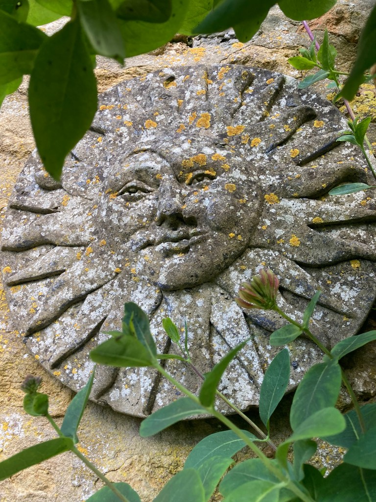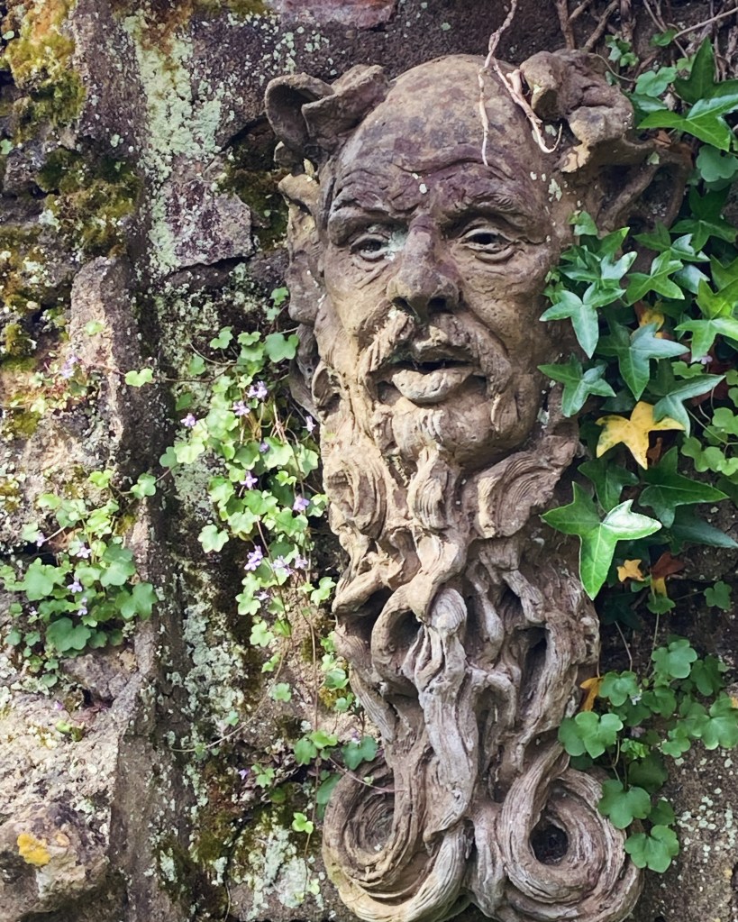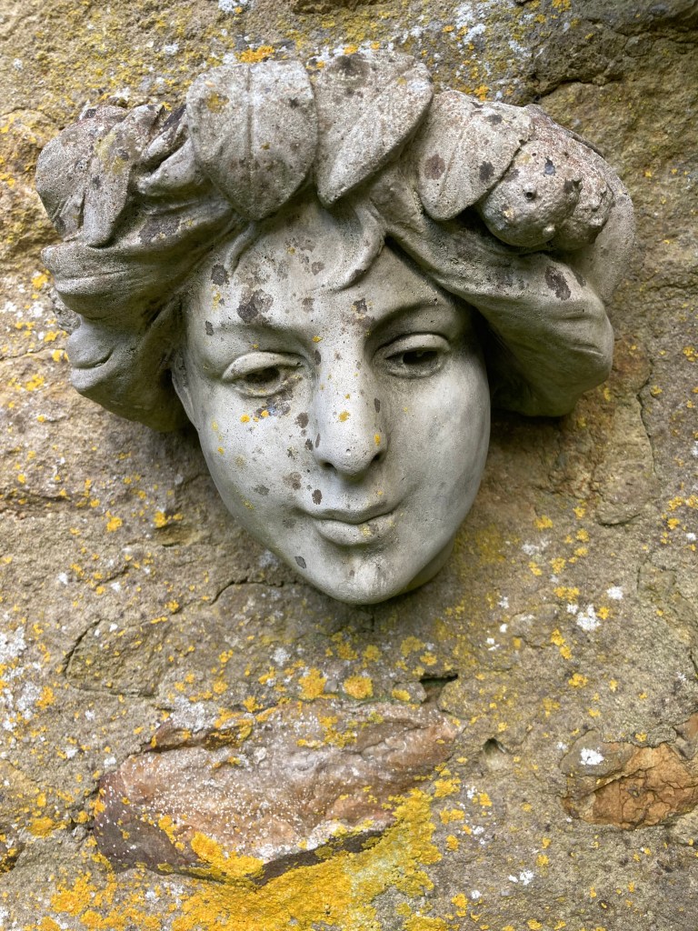 Here in Dorset, my garden includes a quiet courtyard where you’ll find numerous faces peeping out at you.