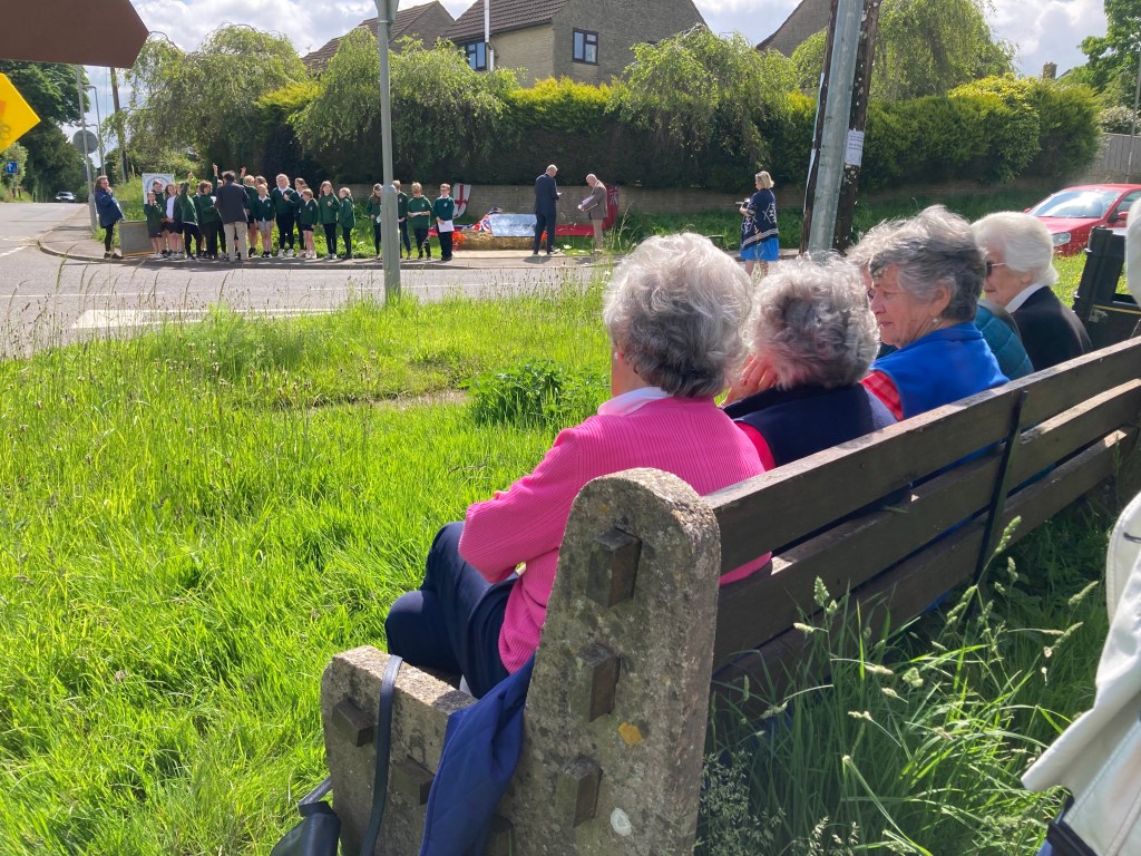 Today, a large crowd of villagers watched as the ceremony took place. Cars and vans drove past, birds sang in the bushes and trees. A gentle breeze blew the grass and wild flowers on the verges to and fro.